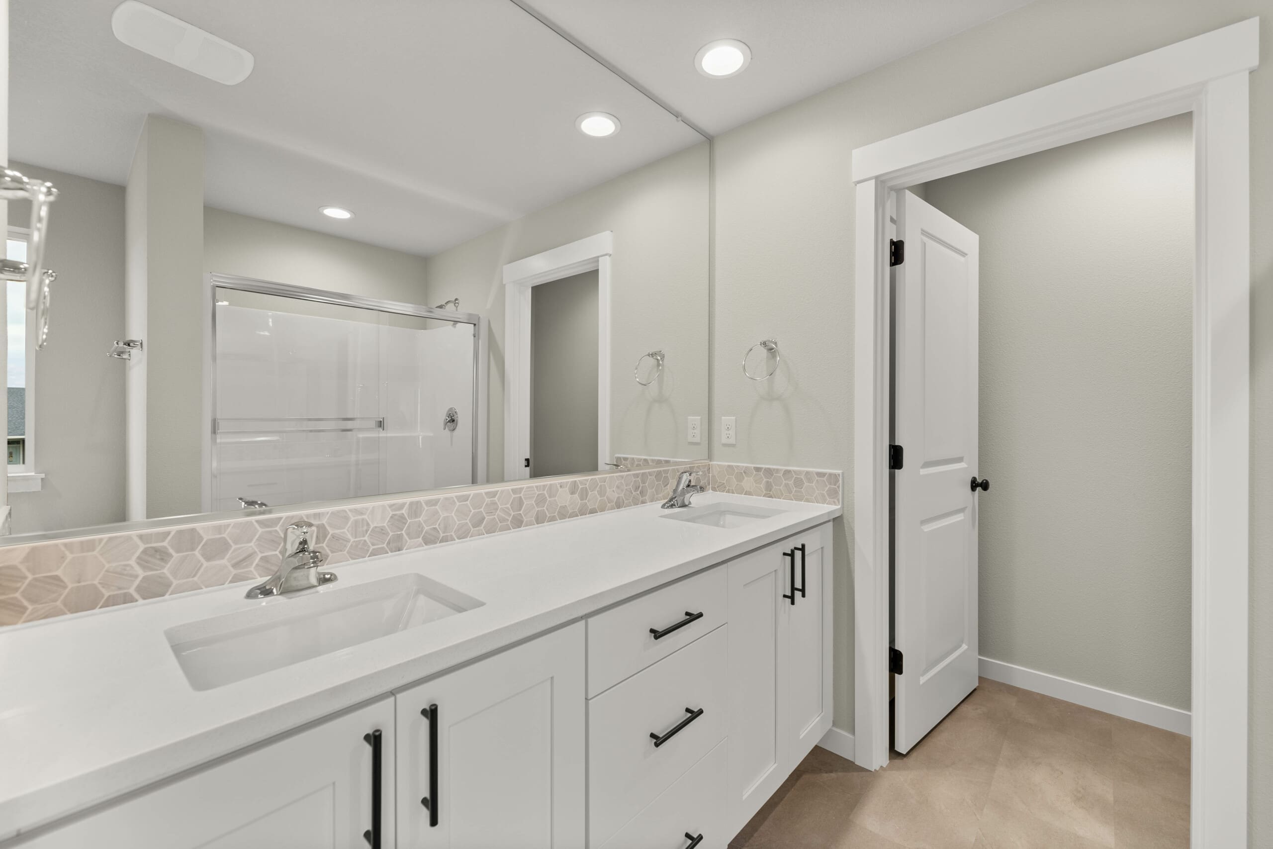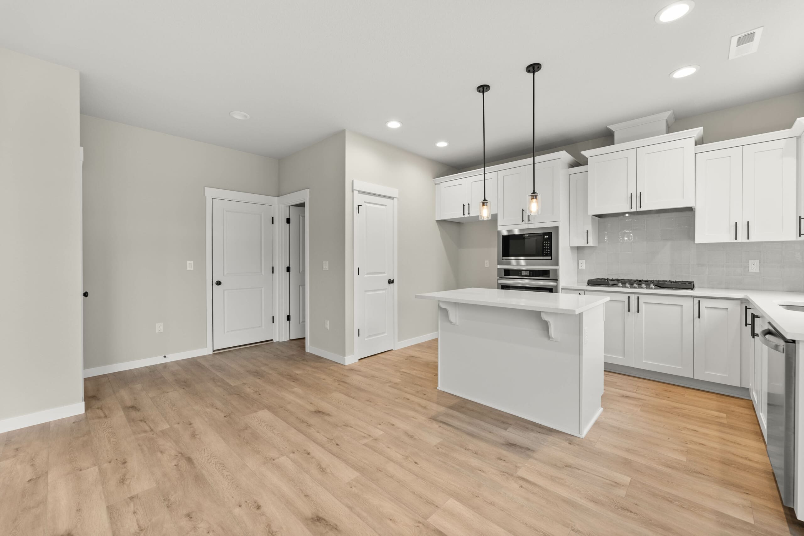 Just off the entry, a den or extra bedroom with a walk-in closet offers flexibility. Located next to a full bathroom, it’s ideal for multigenerational living or a welcoming guest suite. It can also serve as a home office or playroom, with broad sightlines into the family room for easy supervision.