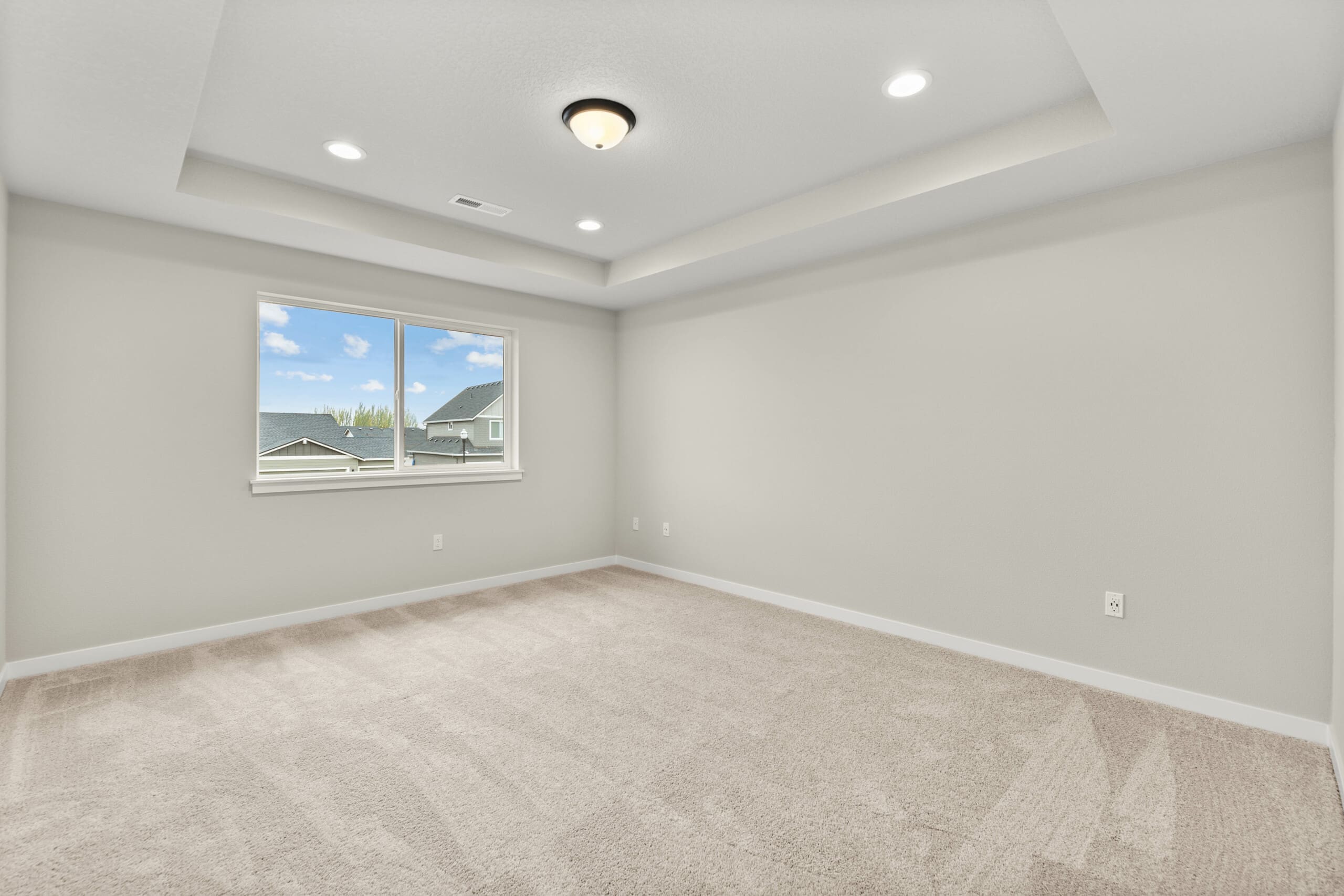 Upstairs, the primary suite is a peaceful retreat, featuring a beautifully crafted coffered ceiling. Personalize the space with floating shelves or a built-in coffee bar for a relaxing morning routine. The en-suite bath includes two windows for natural light and fresh air, plus options for a freestanding tub or fully tiled shower. A generous walk-in closet offers plenty of storage.