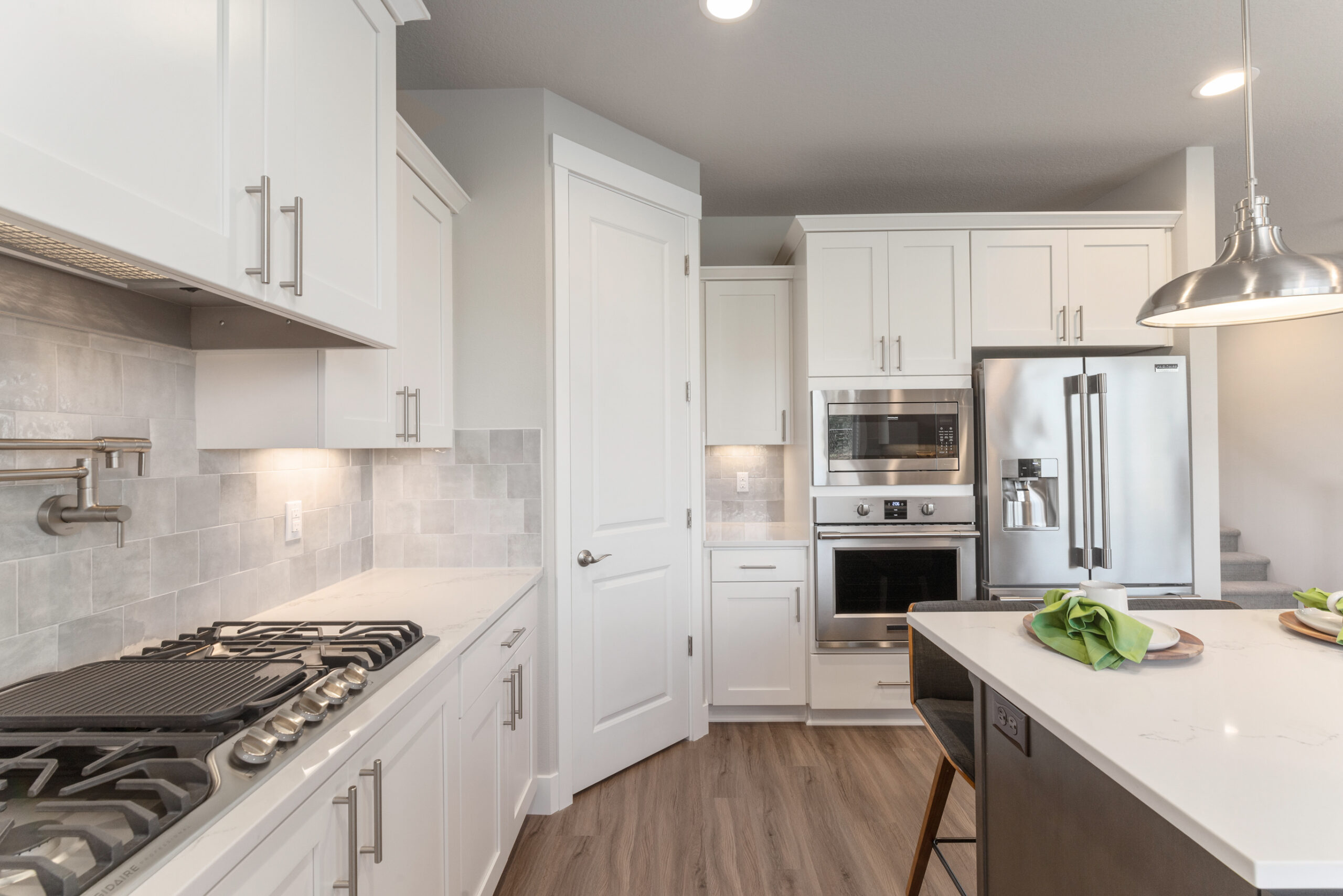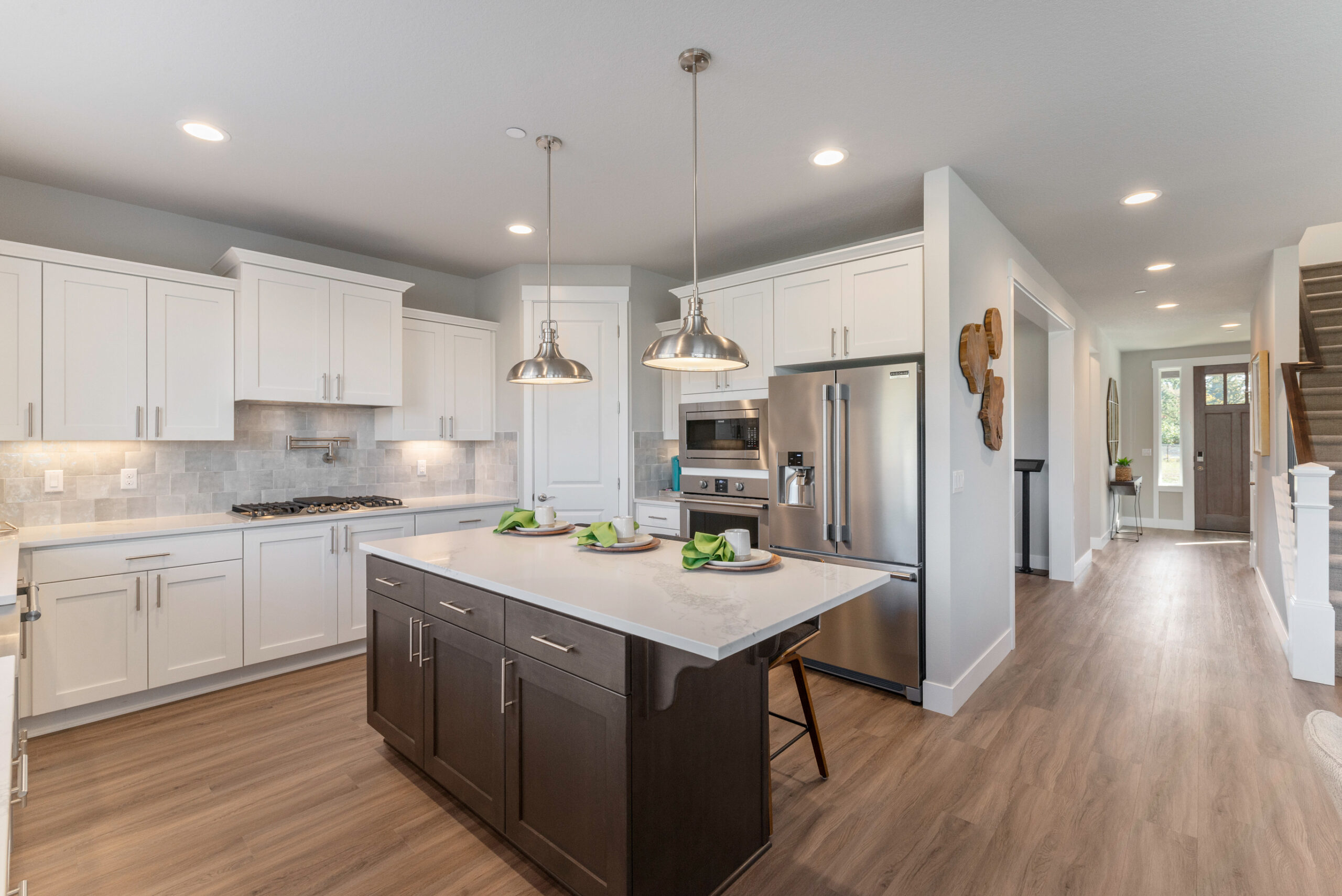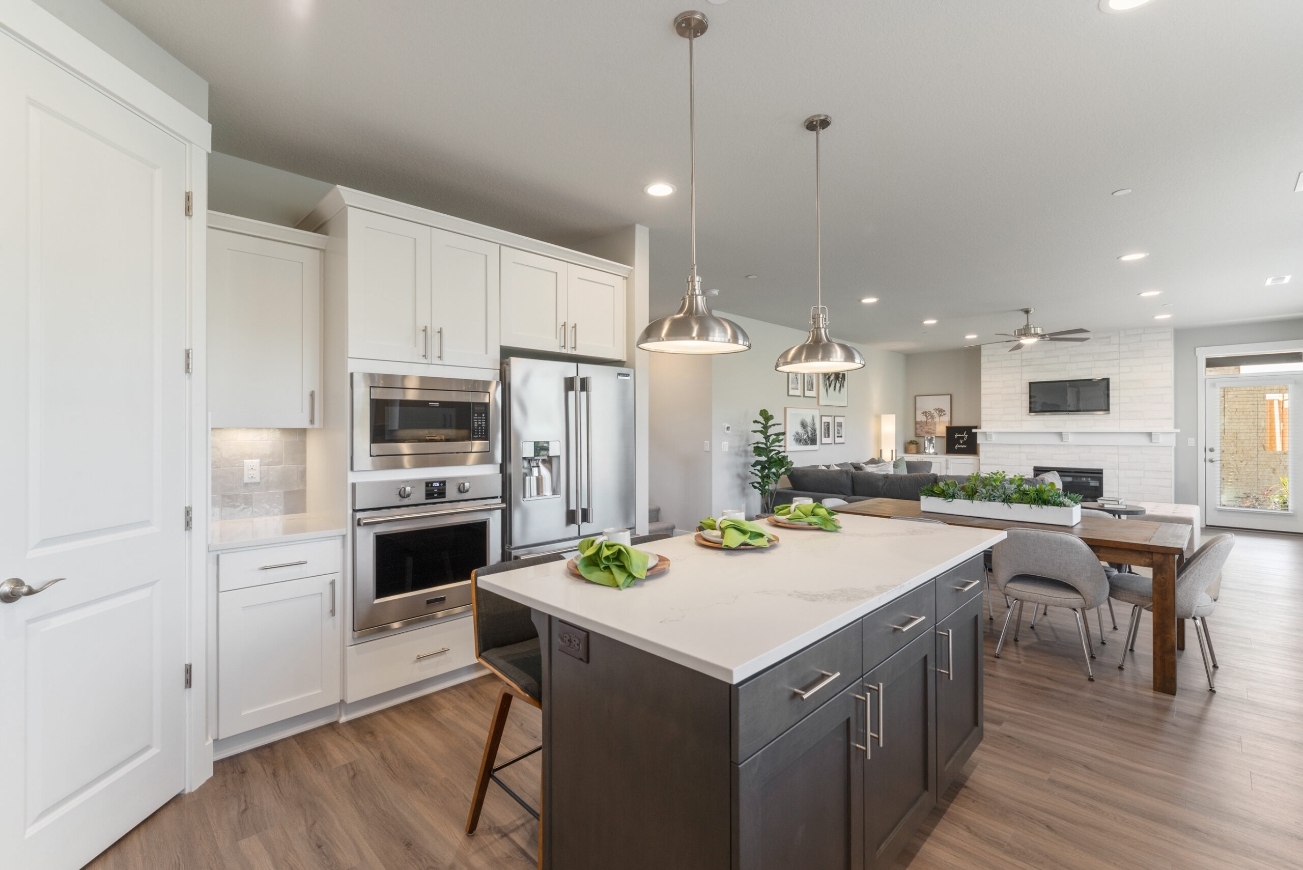 The open kitchen includes slab quartz or granite counters, under-mount sink, and shaker style cabinetry. The large great room, with access to the covered patio, includes an inviting gas fireplace that beckons you back inside to relax and warm up on chilly nights. The second floor includes a spacious bonus room, two bedrooms and the master suite offering a bath with dual vanity and a spacious walk-in closet. Don’t wait, call today!*