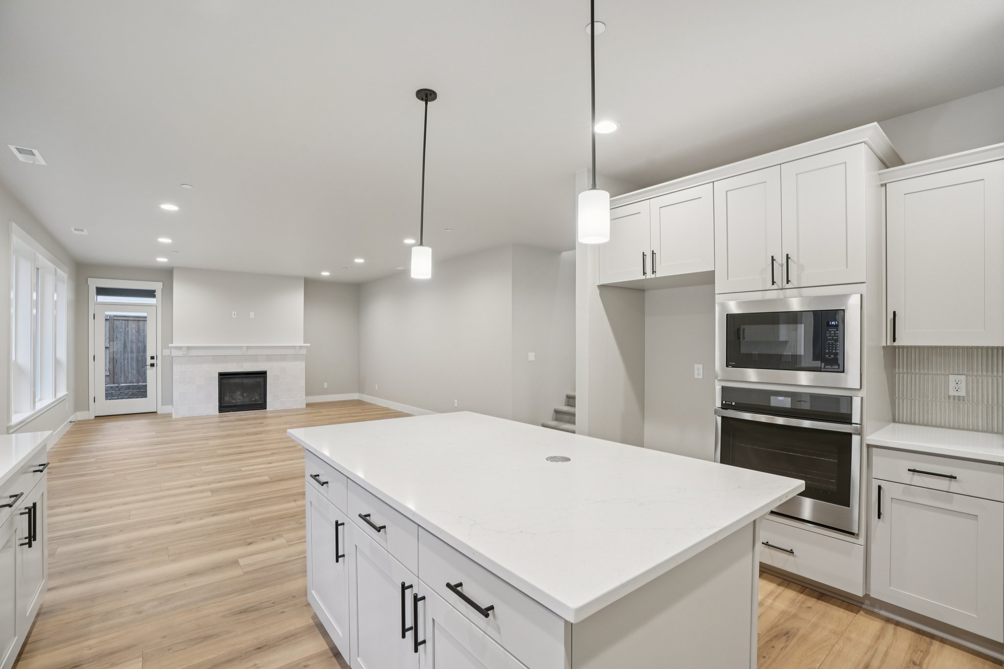The open kitchen includes slab quartz or granite counters, under-mount sink, and shaker style cabinetry. The large great room, with access to the covered patio, includes an inviting gas fireplace that beckons you back inside to relax and warm up on chilly nights. The second floor includes a spacious bonus room, two bedrooms and the master suite offering a bath with dual vanity and a spacious walk-in closet. Don’t wait, call today!*
