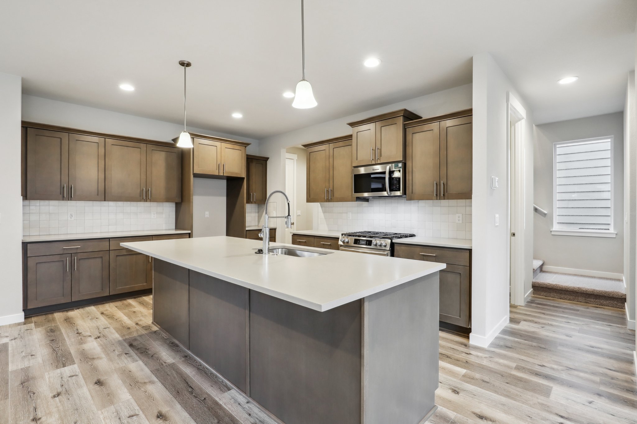The 1929 reimagines contemporary living with its array of included and optional features tailored for to fit your lifestyle. From a fully landscaped front yard and a stone accents on the exterior, to the stainless steel sink with a chrome-finish Delta faucet and Frigidaire appliances, and LED surface lighting throughout, this plan has it all. Opt for a gourmet kitchen and an extended island for culinary adventures, or add a fireplace to the great room for a warm, inviting ambiance. Integrated USB outlets in the kitchen ensure connectivity where you need it most.
